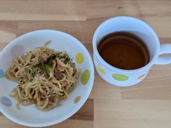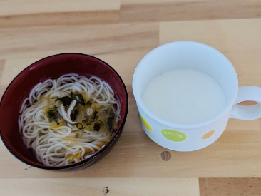 おやつ:牛乳、そうめん(椎茸甘辛)
