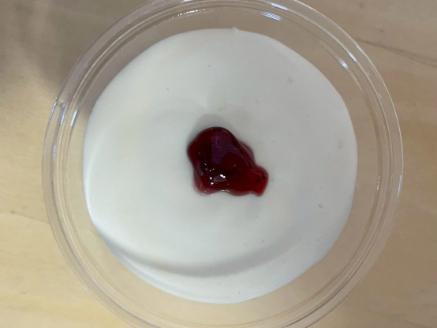 夏野菜カレーライス(体感概念:苦味)、コーンソテー、フルーツヨーグルト、くだもの